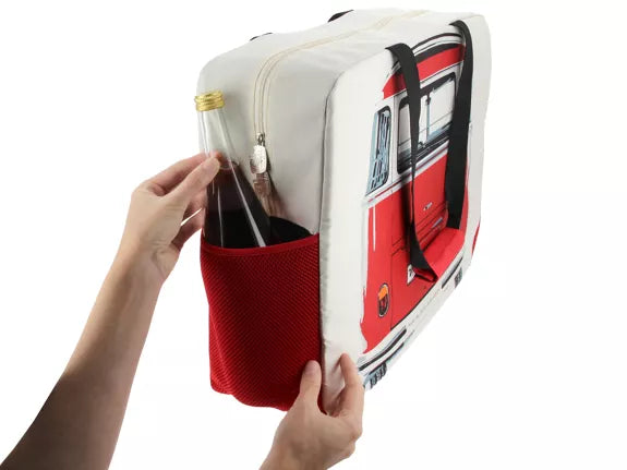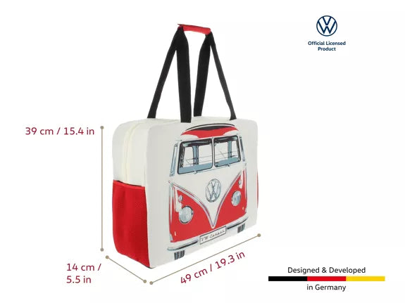 Le Shopper VW Combi de haute qualité est fabriqué en polyester robuste D600, avec une doublure intérieure en nylon imprimée. Le sac Volkswagen Beach/Shopper supporte une charge élevée et peut être chargé jusqu'à 30 KG. Le sac est également imperméable et lavable à la main.